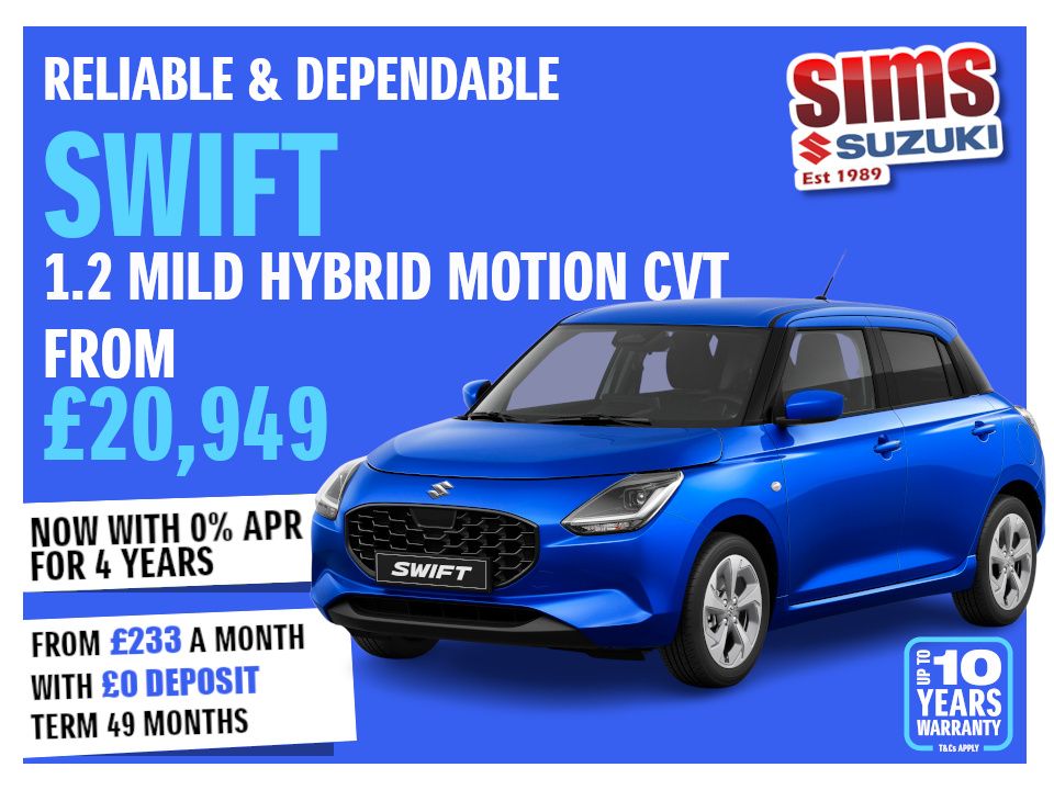 Amazing 2026 Swift offers - Get a Brand New Swift with 0% Finance and Zero Deposit and from only £219 per month over 48 months. Read More