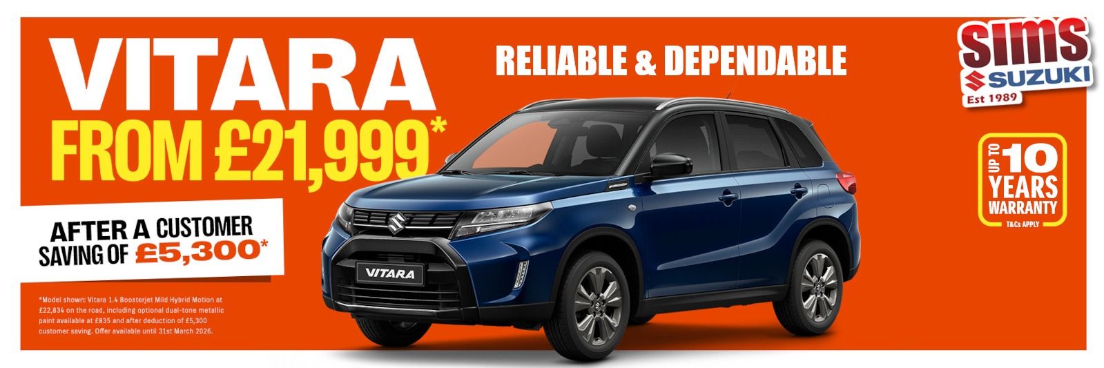 Whether you're commuting in the city, cruising the motorway, or heading off the beaten path, the Vitara delivers performance you can trust — with everyday practicality and modern technology built in.